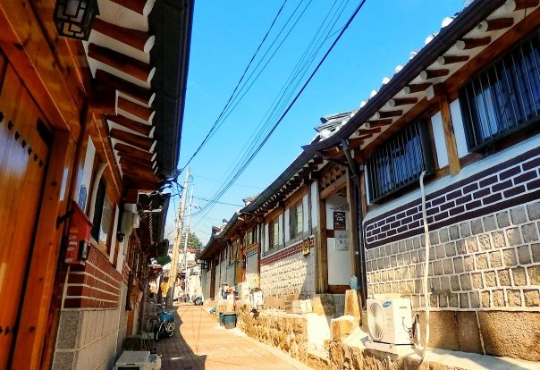 北村韓屋村は、ソウル市内にありながら伝統的な韓屋が保存されているエリアで、過去と現在が共存する静かな町並みが広がっています。