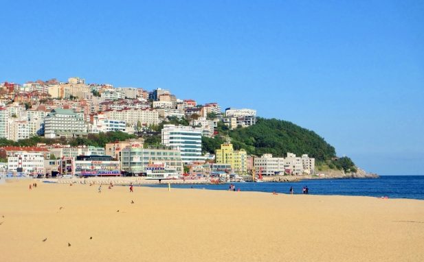 海雲台ビーチは、釜山を代表する人気のビーチです。約1.5kmにわたる白い砂浜が広がり、夏には海水浴やサーフィンを楽しむ観光客で賑わいます。